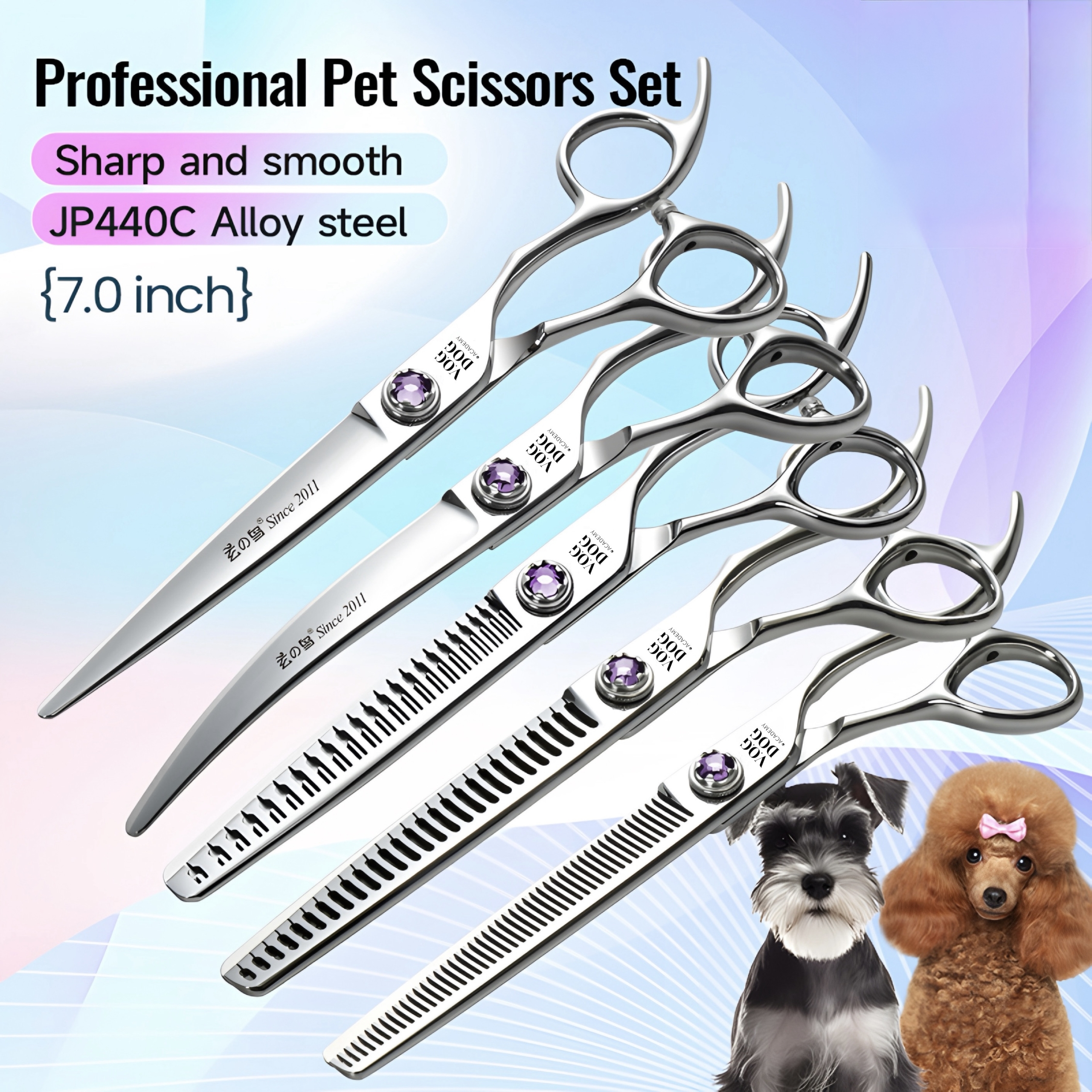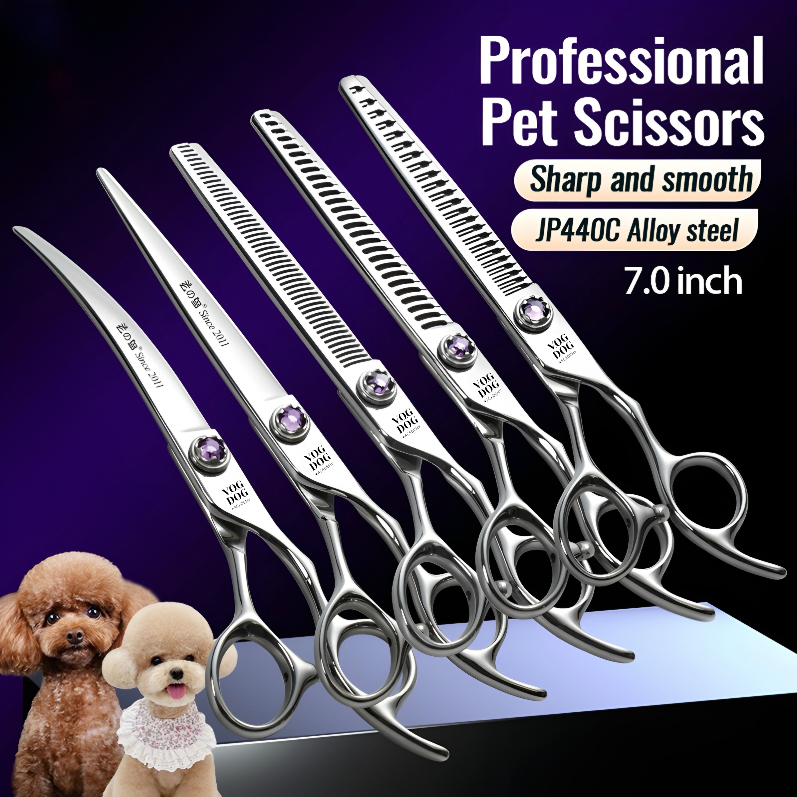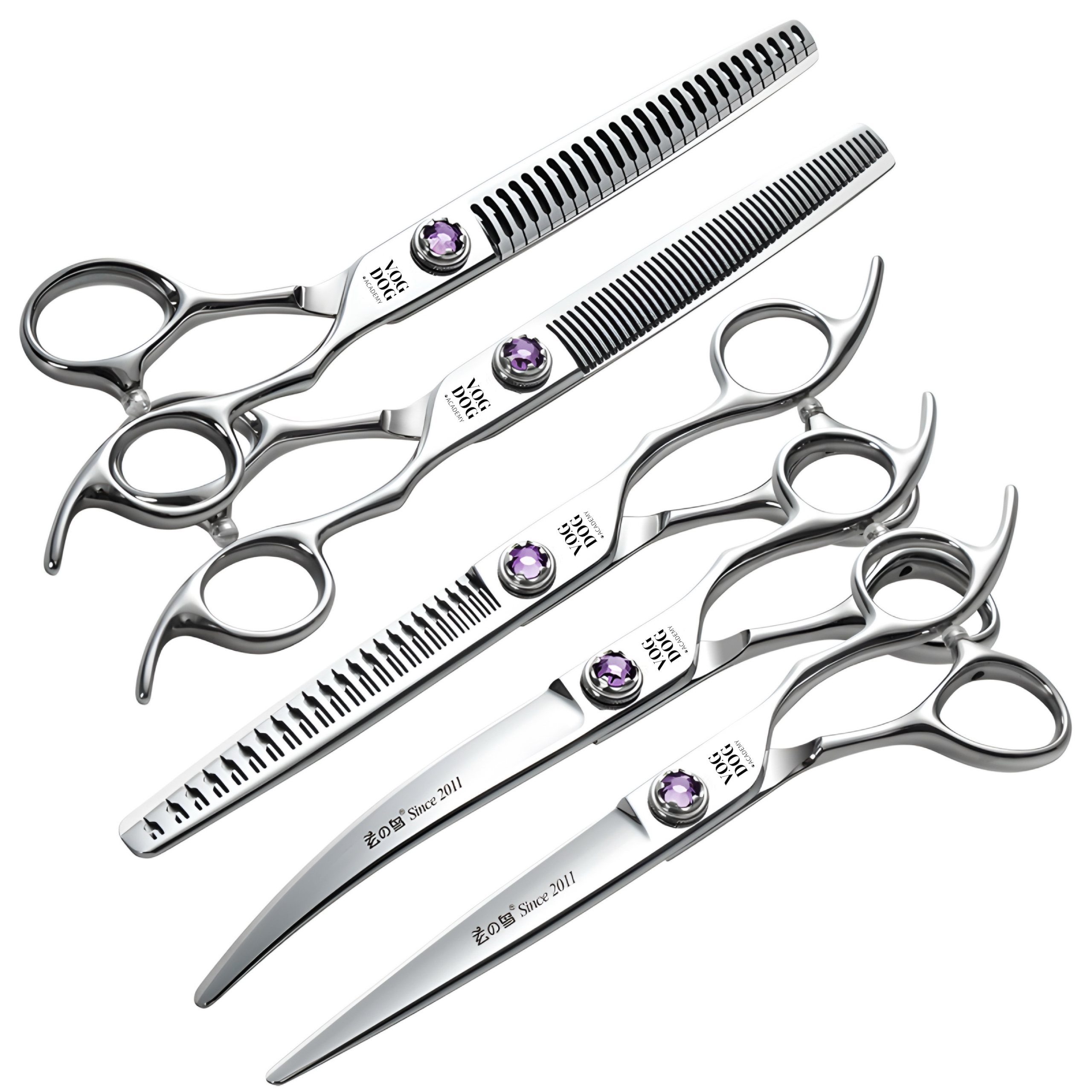 Професійний набір ножиць V.D. Family 7.0″ (5 шт) з кристалічним регулятором натягу для грумінгу собак
